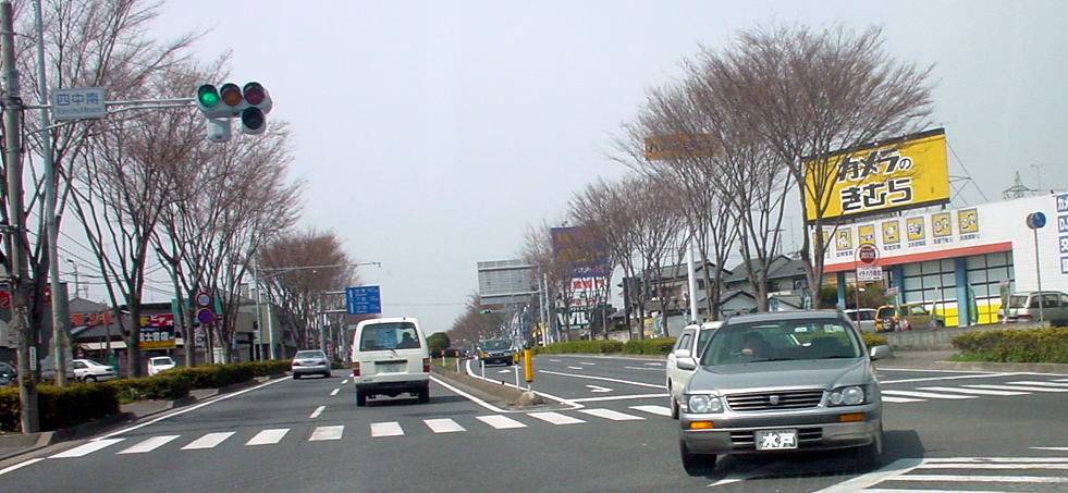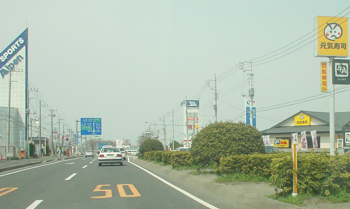 国道6号の向こう側からが国道50号。 国道6号との交差点 ↓ ここから国道50号 (国道50号水戸バイパス終点) ↓「四中南」