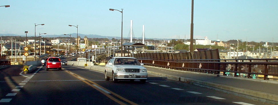 万代橋から水戸市街の台地に乗り上げる形の橋。国道118号の文京橋と形態は同じだ。しかも下を通る県道も同じ。