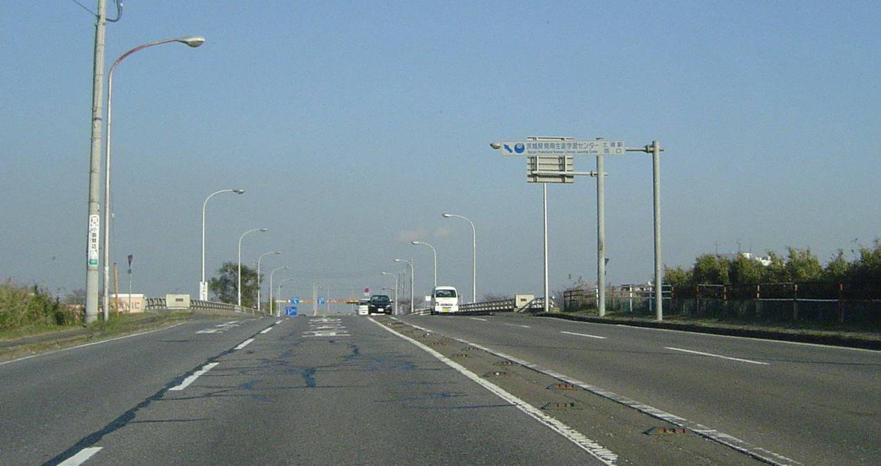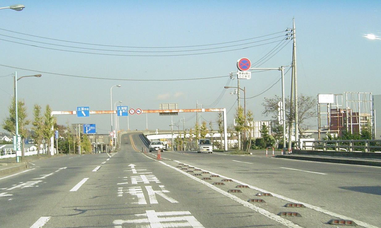 土浦を代表する河川「桜川」に架かる。岩瀬などの桜川市から流れる。 水戸にも同名の川があのがそれとは別。河川名としては在り来たり。 まっすぐ行くと 土浦高架橋だぁ