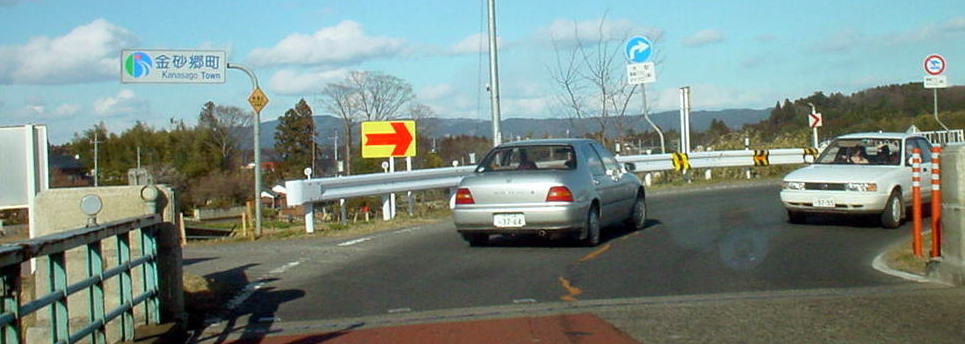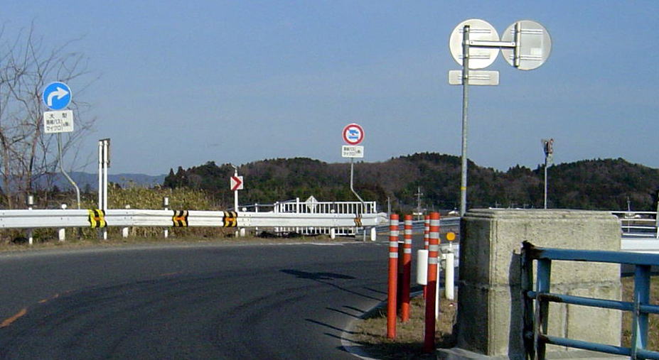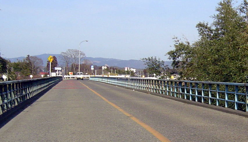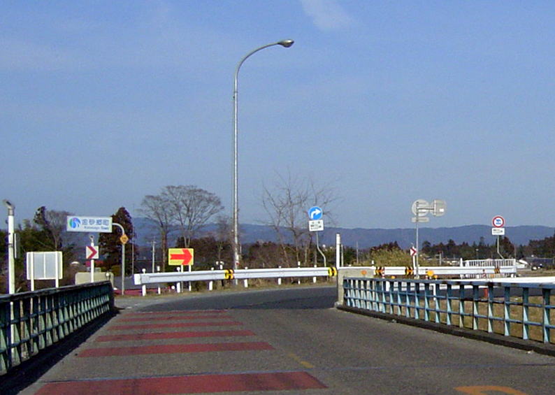 瓜連町と金砂郷町南部の旧郡戸村(ぐんどむら)地区を結び更に常陸太田市へ通ずる主要県道の橋。金砂郷町の「松栄」という地名は「まつざか」と読む。