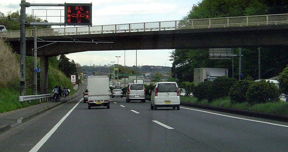 ↓「酒門六差路」 六差路と印象に残る交差点だが,それだけに混雑する地点。空いていたとしても一回は信号に引っ掛かってしまう。 ここを越せば 暫く信号は無い。 向うの丘が那珂台地に乗るひたちなか(勝田)。