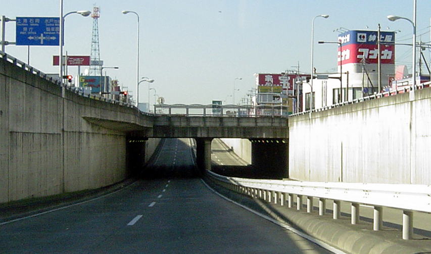 千波立体交差。旧国道6号(県道50号)と交差する。