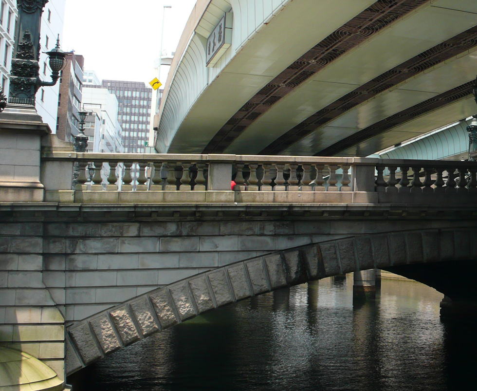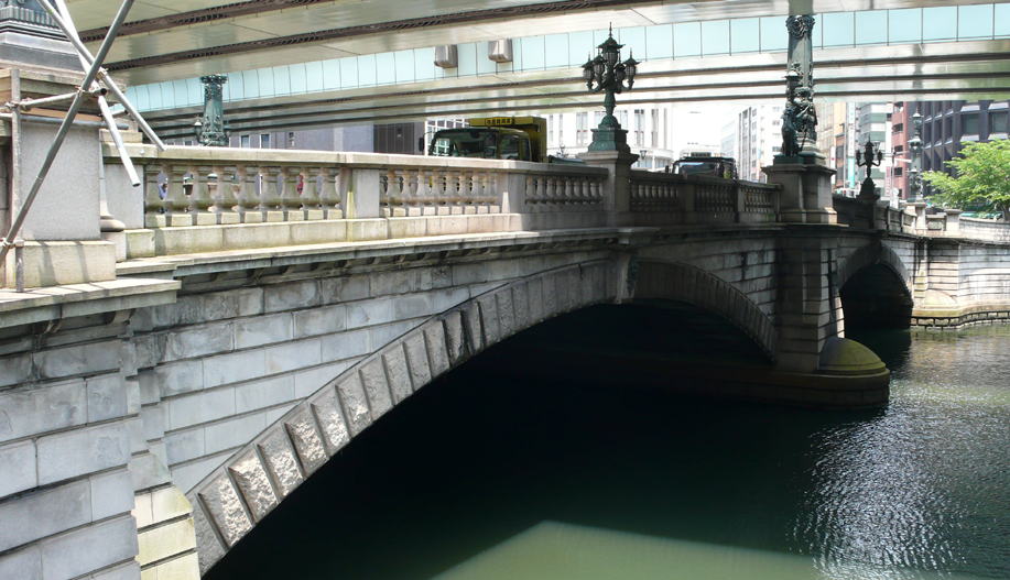 現在の橋は第十九代目であるが,明治期の石橋が現役で残っている。昭和38年に橋の上に首都高速が覆いかぶさり景観が損なわれている事から近年,首都高の地中化の話も出てているが,莫大な予算のため現実化は難しい。